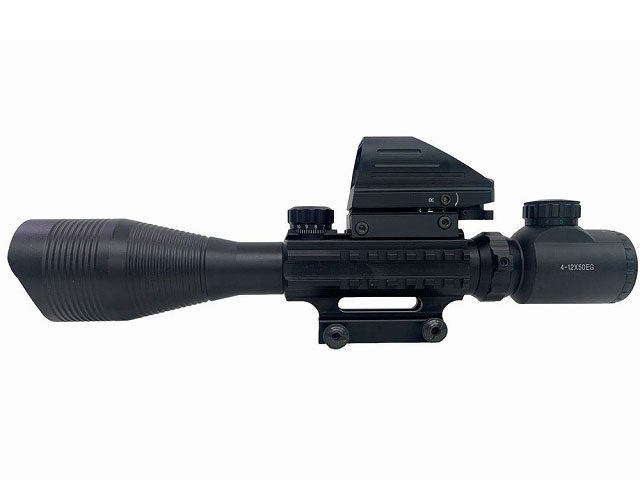 [NB] イルミネーションスコープ 4-12x50 ロング 3倍〜 ピカティニー ビルドインマウント イルミネーション マウントベース&リフレックスタイプダットサイト付き (中古)の販売ページ|エアガン.jp
