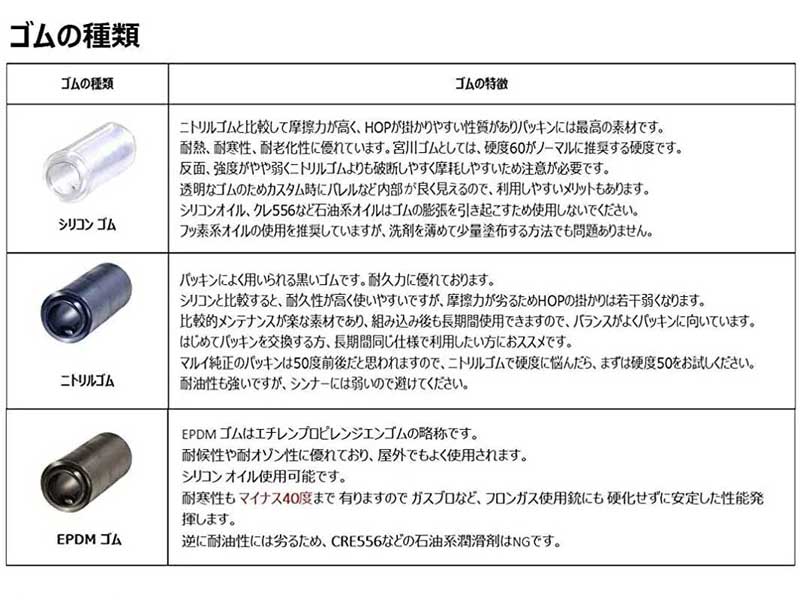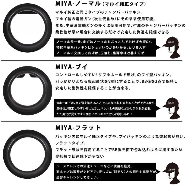 [宮川ゴム] チャンバーパッキン 3種セット MIYA ノーマル ブイ フラット ニトリル製 硬度60° (新品)の販売ページ|エアガン.jp