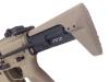 高温で熱処理ができない樹脂パーツへの塗装は、実銃にも使用される「セラコート・フィニッシュ」を採用したタフネスな仕様となっていて、扱いやすい「サイクルエンハンサー」搭載型の電動ユニットを取り回しが良く剛性に優れたアルミ合金製のボディに内蔵。PTS社製バックアップサイトや20mm変換マウントまで付属する実践派で、とくにデザートカラーにこだわるミリタリーフリークには見逃せない逸品です。