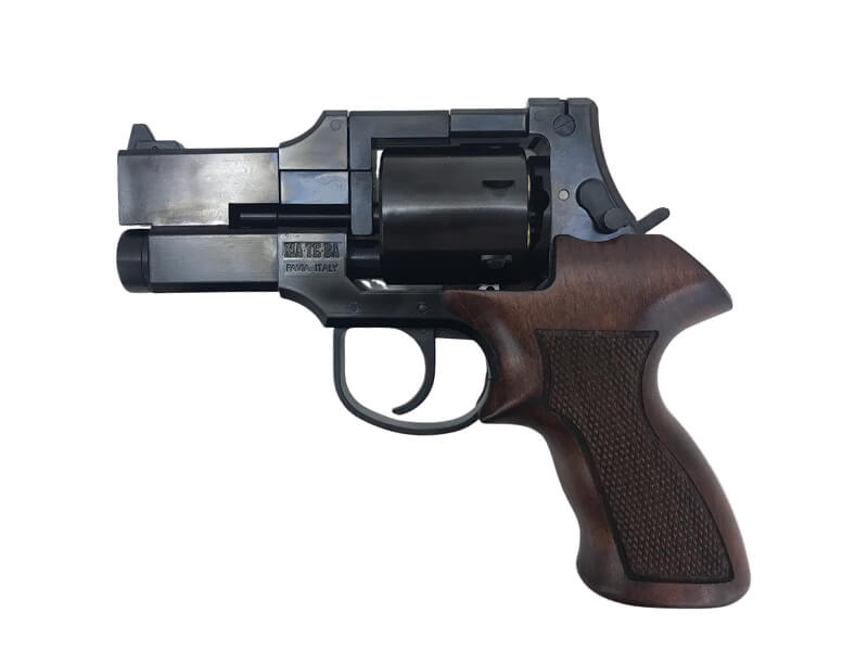 架空の銃のようだが、実際にイタリアのマテバ社で設計・製造・販売されていたモデルで通常のリボルバーと異なり、銃身が下部に設置されている事が大きな特徴。久しぶりの再販です!