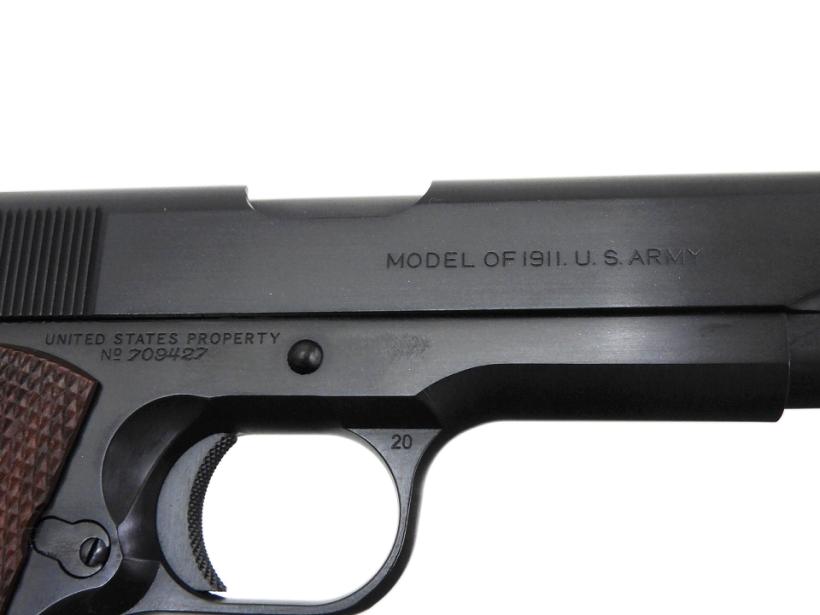 一世紀以上に渡って各国の法執行機関や軍の拳銃として君臨したM1911。その長い歴史の中でも、最初のターニングポイントは、実用面での問題を改修したM1911からM1911A1への変更であり、M1911A1と言えばパーカライズドフィニッシュが一般的ですがこの変更時期は戦時中ではなかったため、当初M1911A1もM1911と同じくにブルー仕上げで生産されました。細かな仕様の違いも含め、これがいわゆるトランジションモデルと言われる理由になります。