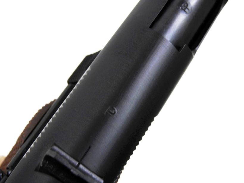 各部刻印:トランジション特有の細かな刻印を、レーザー・彫刻機両方を駆使して再現。スライド上面のPマークは本物同様打刻にて入れています。奇麗に整ったスライド上面に打たれた、少し太さにムラがあって縁の盛り上がりがある刻印が、より一層本物らしさを演出してくれます。