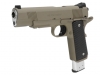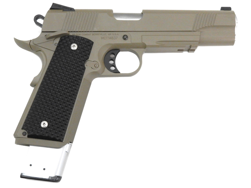 ウイルソンコンバットのフラッグシップであり、タクティカルカスタムの最高峰モデルとして君臨する「タクティカルスーパーグレイド」。そのTSGへ、タクティカルガンの定番にもなりつつあるアースカラー、フラットダークアースを大胆に全身ペイント。グリップは、ガンナータイプのものに滑り止め仕上を施したカスタムバージョン。