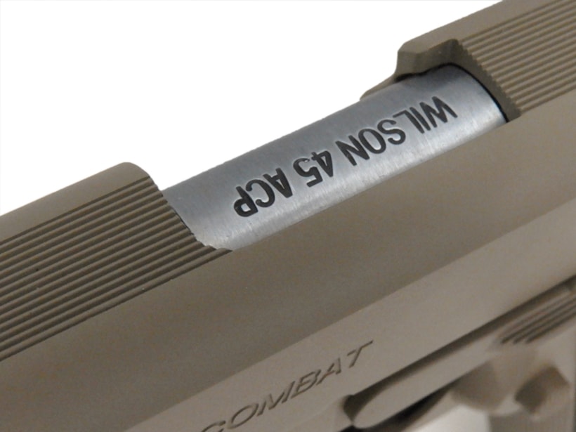 TSG RLのFDEカラー仕様でガンナーグリップ装備という、一見奇抜なスタイリングだが、見ているうちにすっと馴染んでくる。ロングマガジンまで搭載しバリバリの使用仕様という印象だ。性能面では、まずガンナータイプグリップは非常にグリップ力が高く、それはこの凹凸とざらついた表面を見れば一目瞭然だろう。サイトもウィルソン純正のコンバットサイトを再現しており、サイティングしやすい。さらにロングマガジンのおかげで装弾数が増えただけでなくガス容量自体も増えているため、一度のガス充填で安定した動作が長く楽しめる。