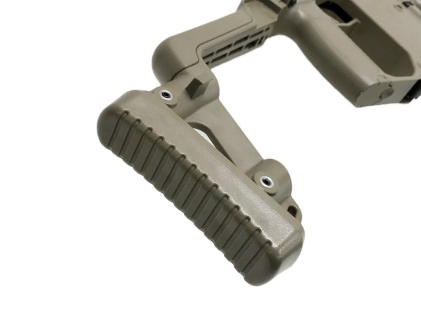 銃本体からトリガー、マガジンガードまで、ポリマー部品すべてを砂漠戦仕様に一新されたTANカラー仕様。