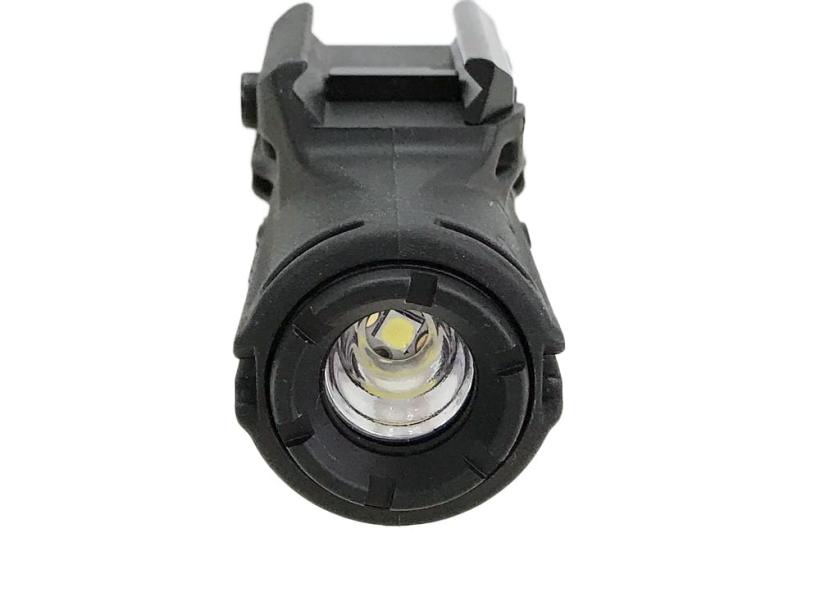 本体上部にアクセサリレールを備え、銃側のレールに簡単に装着可能なウェポンライト。