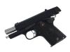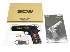 最小のカスタムガバメント。「コンバットマスター MC-1モデル」をモデルに製作されており、ブルーイング・フィニッシュが施され、ユニークな姿をした全長178mmの極小モデルに、極限までカットダウンしたボディとユニークなスタイルを新開発ブローバックエンジンで再現している。