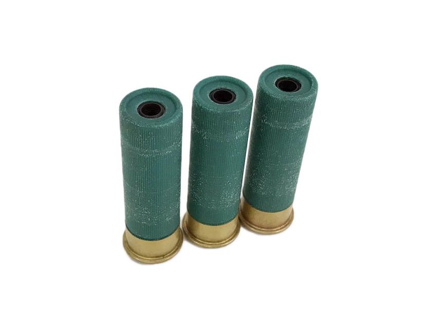 ショットシェルを銃の下部から装填して目一杯チャージングハンドルを引いてチャンバーに送り込みます。トリガーを引いて発射した後ブローバックで自動排莢するさまはリアリティ抜群。 ショットシェルカート3発付属。