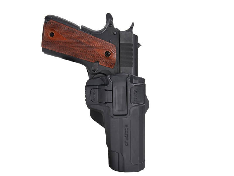 ロック機構はScorpusシリーズのLevel 2保持システムを採用しており、収納する事でトリガーガード部分にロックがかかる構造。