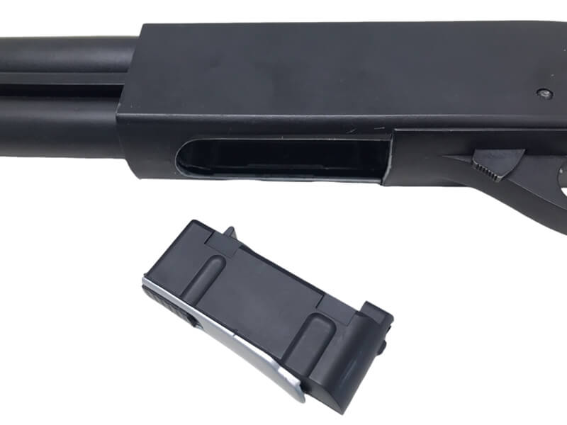 A&K社がレミントンM870をモデルとして、メタルボディにシンプルなメカを内蔵したエアーコッキングガン。ショットガンスタイルながら単発式、可変ホップアップ内蔵。