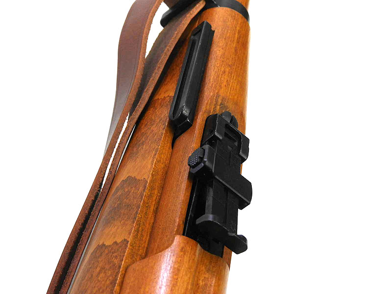 ストック末尾は金属製バットプレートで強化。これは銃を杖かわりに使用した際、岩肌などの地面に当たって割れてしまわないようにするため。可変ホップアップ搭載。調整はマガジン横のホップアップスクリューで調整可能。銃左側にはスコープを搭載するときに必要なレールが装備。機関部は亜鉛ダイキャスト製、ボディはリアルウッドで実銃さながらの重厚感ある仕上がり。マガジン部分にガスタンクを備えた発射システムで、ガスガンの軽快なボルトアクションが味わえる。