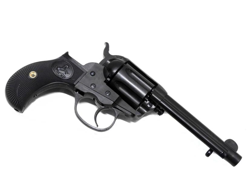 実銃は1877年から1909年まで合計166,849丁が製造されたダブル/シングル・アクション・リボルバーです。ビリー・ザ・キッド、ドク・ホリディなどガンマンが使用したと言われる有名な銃。