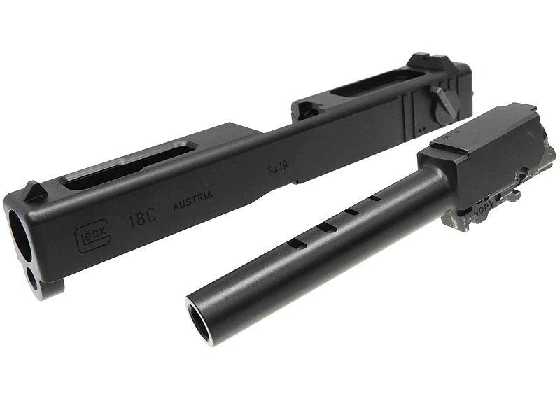 毎分1,200発の連射サイクルやスライドのフルストローク化、そしてセレクターによるフル・セミ切替機能の搭載とスライドオープン機能など、マシンピストル・グロック18Cとしてのリアルな作動を追求したモデルです。
