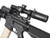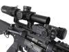 フォアグリップにはTango Downタイプ バーティカルフォアグリップ、INFORCE製 WML gen2ライトを装備、常時/プッシュ/ストロボが切り替えられる400ルーメンのタクティカルウェポンライトだ。上部にはVector Optics製 Taurus 1-6x24FFP ライフルスコープをGEISSELE Super Precision タイプにて固定。下部にはエイミングデバイスがすっぽりと収まっている。エイミングデバイスは123A一本でグリーンレーザー、ライトなどを使用できる。