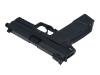 H&Kのポリマーフレームピストル USP。外装式ハンマーやガバメント方式の操作系統により、アメリカ市場で人気を博している。日本の警察特殊部隊(SAT)、陸上自衛隊特殊作戦群、ドイツ連邦軍など各国の法執行機関に採用され、アメリカ特殊作戦軍のMARK23(SOCOMピストル)のベースともなっている。