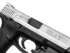 多くのバリエーションモデルが存在するM&Pの中でも、マニュアル式のサムセフティを備えた9mm口径モデル。アメリカで本物を採寸・型取りしたデータを元に、形状やサイズはもちろん、シボや刻印など細部にいたるまで再現。