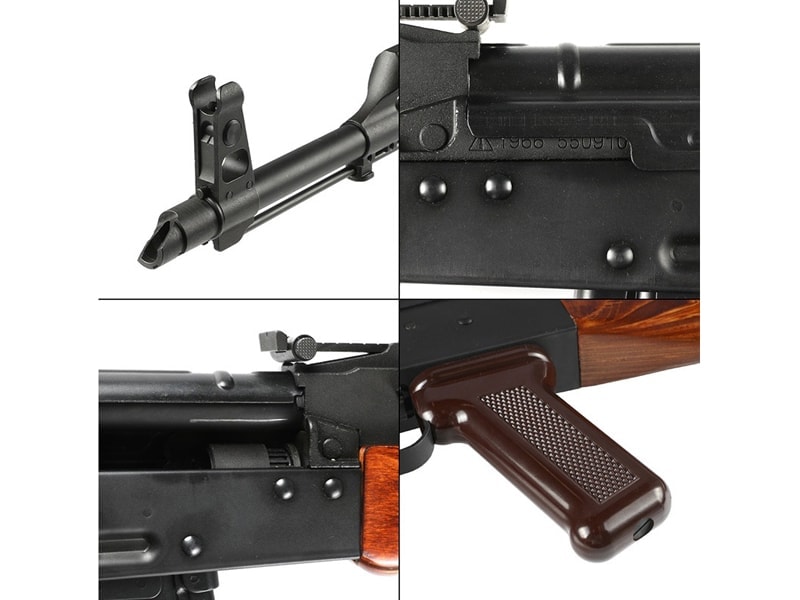 今回搭載された“ AK V3システム ” は銃本体の各パーツの固定方法やマガジンの軽量化を含むアップデートが施されている。バレルを含むホップアップユニットを新たに再設計。バレルに組み込まれたホップアップユニットごとレシーバーに大きなボルトで固定、さらにその上からガスブロックで固定する二重ロック方式に再設計され、ハンドガードに様々なガジェットをつけても、重量で下に垂れ下がることがなくなった。また、ホップアップユニット自体もピストンロッドの入り口付近に再設計され、ボルトキャリアを外せば簡単にホップ調整が可能となった。