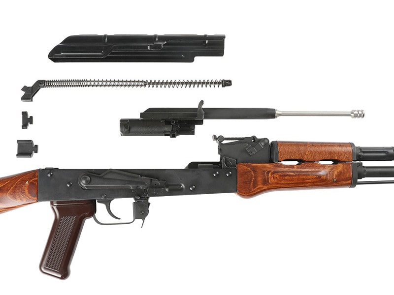 ベークライトグリップ、木材合板のリアルウッドストックはもはや当たり前。ハンマーセット、トリガー、セレクター、バレル、ボルトキャリア、ローディングノズルハウジング、ピストンロッドまでもがスチールでできている。