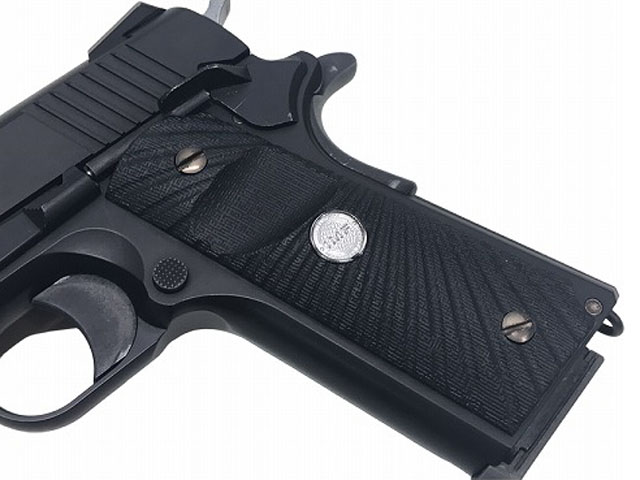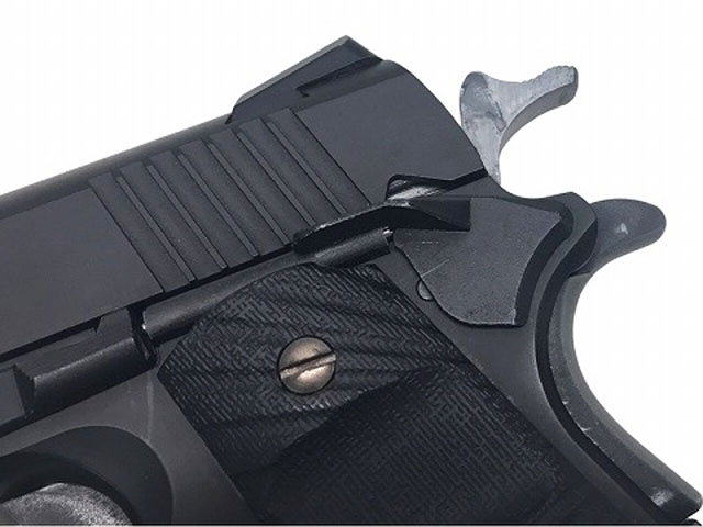 スライドやレイル一体型フレーム、各種レバー類をブラックで統一し、G10タイプのグリップも本モデル専用カラーを採用。