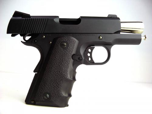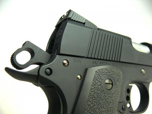シリーズ90としてコルト社が発売したコンパクト45オートです。同社のオフィサーズ(3.5インチ)よりも更に小型化(3インチ)されており、ステンレス製のスライドと軽量アルミ合金製フレームで構成されている。