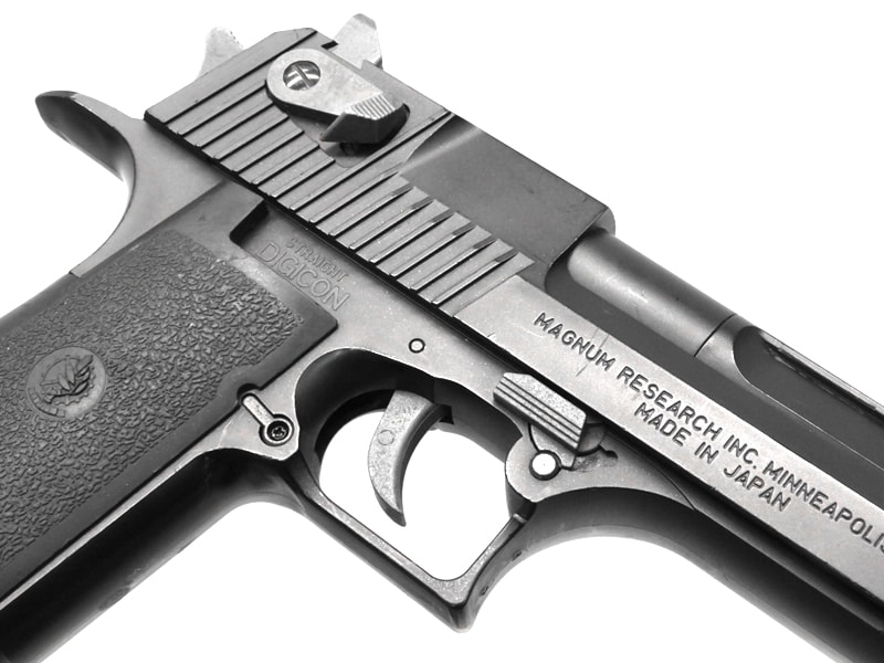 パワー・命中・安定・燃費性能に優れた固定スライド式のガスガン。デザートイーグル、通称デジコンイーグル。初速は規制値内。それでも約90m/sほどのパワフルさを発揮。