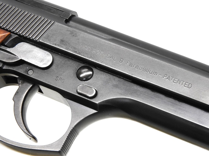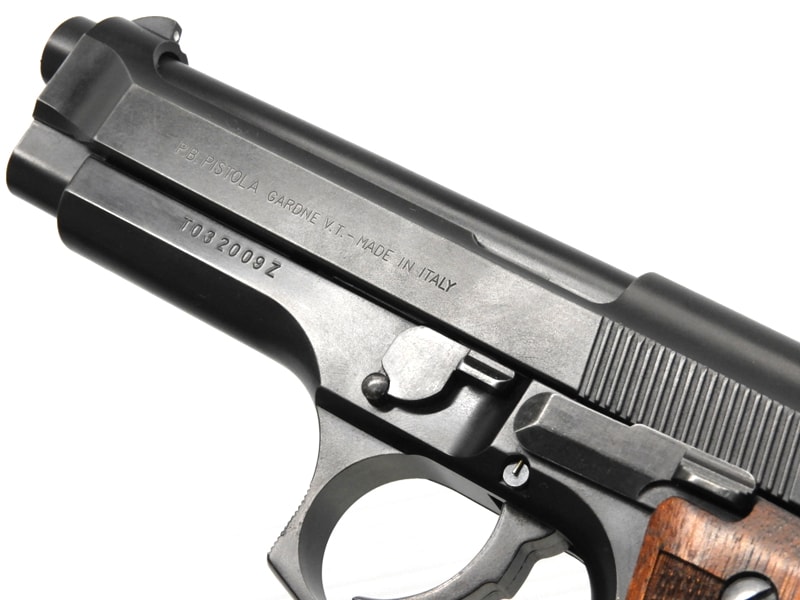 ベレッタ社のロゴ入り木製グリップを装備したカスタム品。
