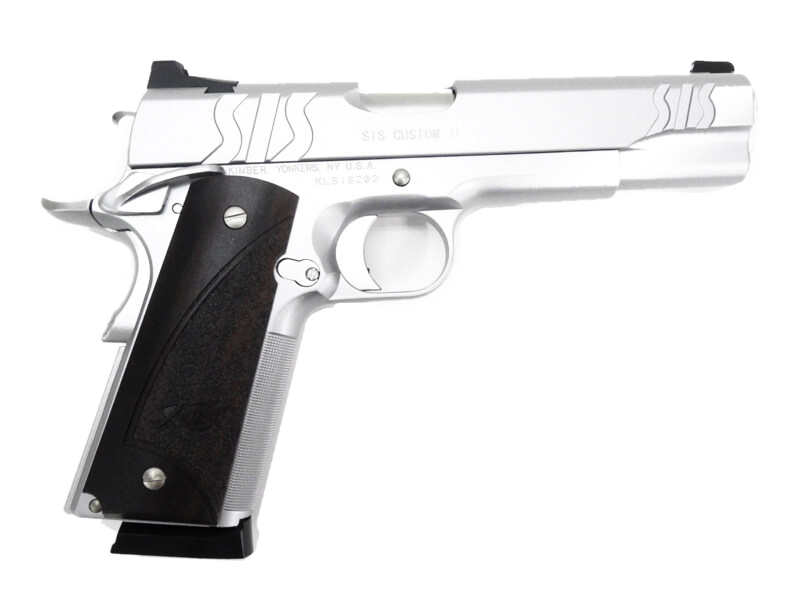 [WA] SIS CUSTOM II オールシルバー (中古) 製品詳細画像1 画像では分かりにくいですがグリップは茶色と黒の木目調グリップとなっています。