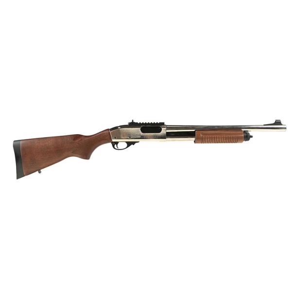 シルバーとリアルウッドのツートンカラーが目を引く、レミントンM870タイプガスショットガン。