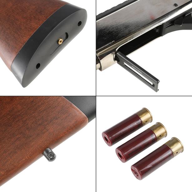 フロンガスをパワーソースとして使用するショットガンで、チャンバー部には3発⇔6発同時発射切り替えスイッチが配置されています。