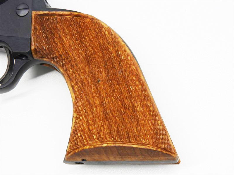 ハートフォード製SAA.45 FDC(ファスト ドロウ カスタム)の完成品モデルガンに、チェッカー入りワンピース木製グリップが付属したフジカンパニーのコラボモデルです。