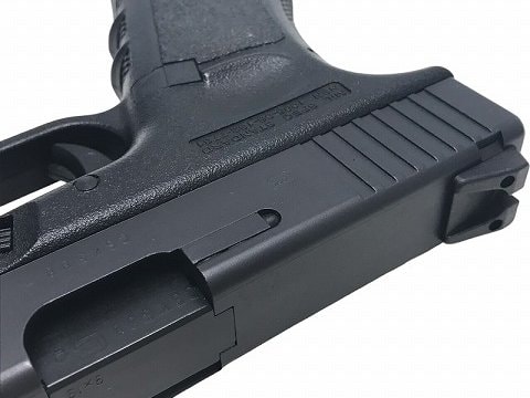 実銃同様フラッシュライトや、レーザーサイトを取り付けられるようにフレームに溝がある。ブローバックの機構は快調で、パシャッパシャッとどんどん撃っていけるぐらいだ。
