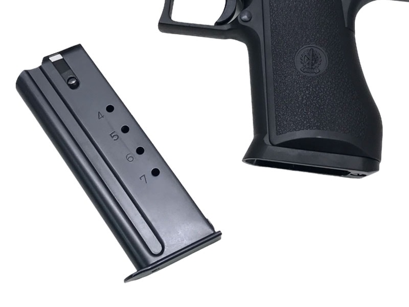 重く巨大なHW製スライドを、7mmキャップ火薬1つで快調にブローバックさせる痛快さと、迫力ある発火音に、思わず笑みがこぼれるモデルとなっている。