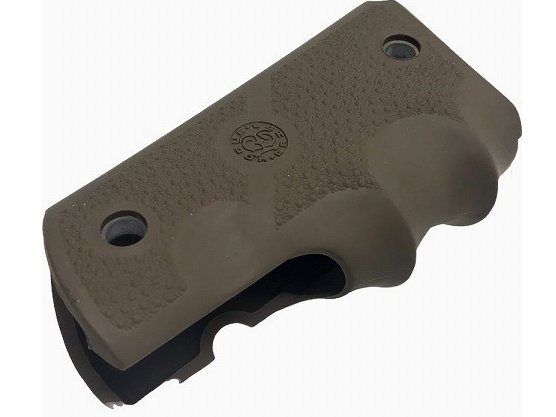 米国ホーグ社が製造するオフィサーズサイズの1911用ラバーグリップ。フィンガーチャンネルタイプ。FDEカラー。