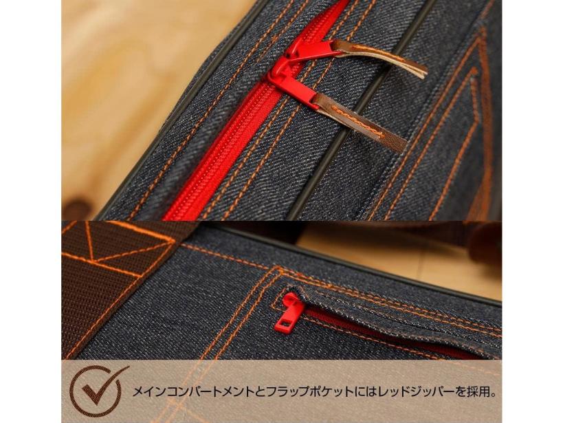フラップポケットのはレッドジッパーファスナーで開閉でき小物類を入れておくのに便利です。