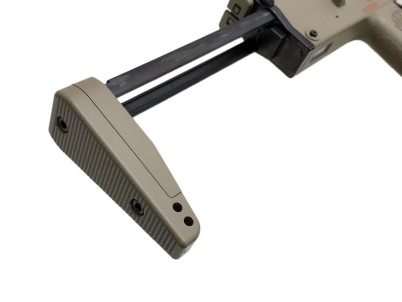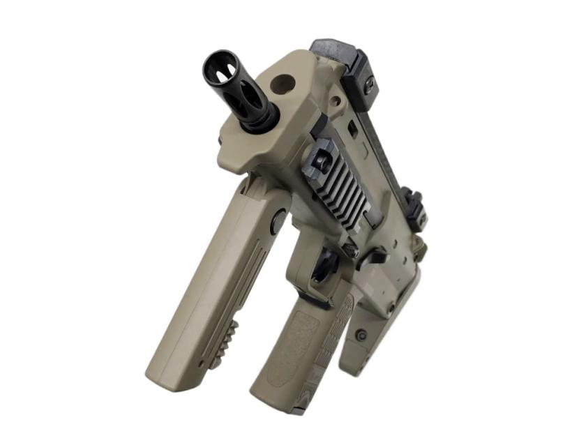 写真で見ると長物のような気もするが、ストック収納時は全長380mmというコンパクトサブマシンガン。