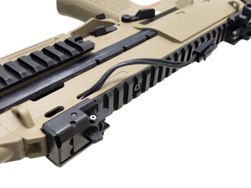 H&K社がFN社のP90への対抗馬として、1999年に発表したモデルで、エアガンではバッテリーからメカボックスから新開発されたものを注ぎ込んだニューフェイスである。