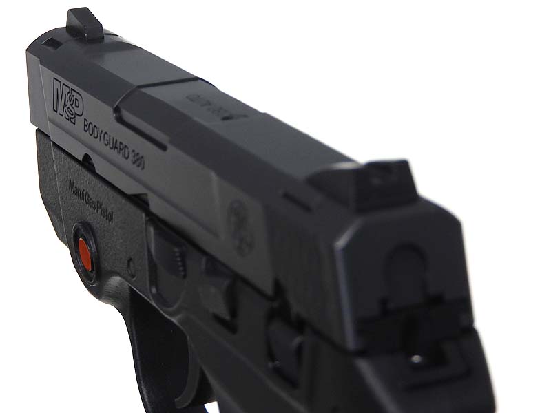 フルサイズのハンドガンが持つ機能を保ちながら、コンシールドキャリーに最適なサイズまで小型化したBODYGUARD 380。東京マルイでは、固定スライドガスガンの「コンパクトキャリーガスガン」シリーズ第2弾として、レーザーサイトを備えたBODYGUARD 380をラインナップ。本物が備える各種機能をオミットしてシンプルな操作性に仕上げながらも、外観のディテールを可能な限り再現しています。