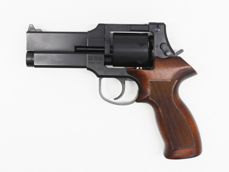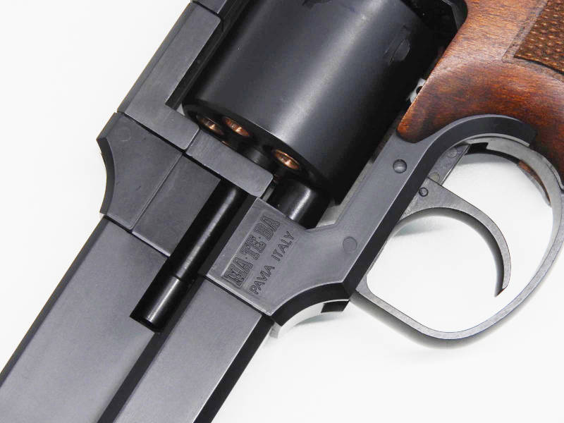 架空の銃のようだが、実際にイタリアのマテバ社で設計・製造・販売されていたモデルで通常のリボルバーと異なり、銃身が下部に設置されている事が大きな特徴です。