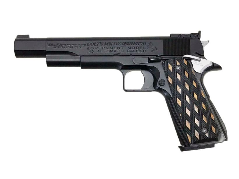 ビアンキカップのコルトスピードイベント等でボーリングのピンを撃ち落す競技にカスタムされたガンのブラックモデル。