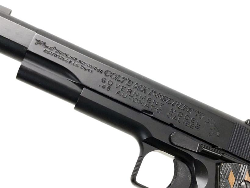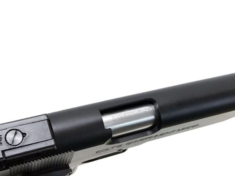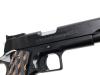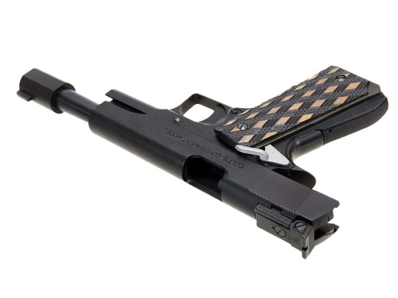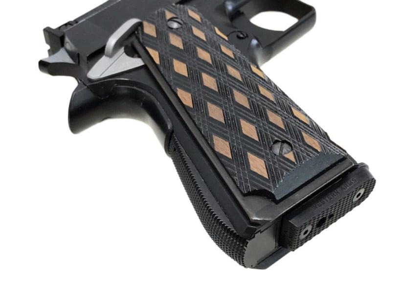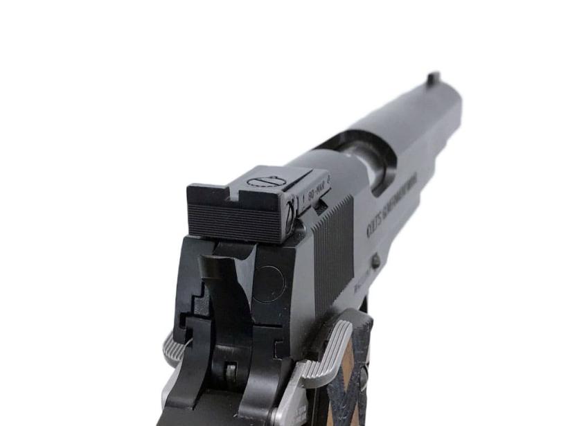 グリップにはスチール製のウェイト、バレル先端にはコンペンセイターではなくウェイトが装備されていたり、ノンホールのロングトリガーやグリップセイフティのオミットなどレースガンとしてのポテンシャルを高められている一丁に仕上がっています。