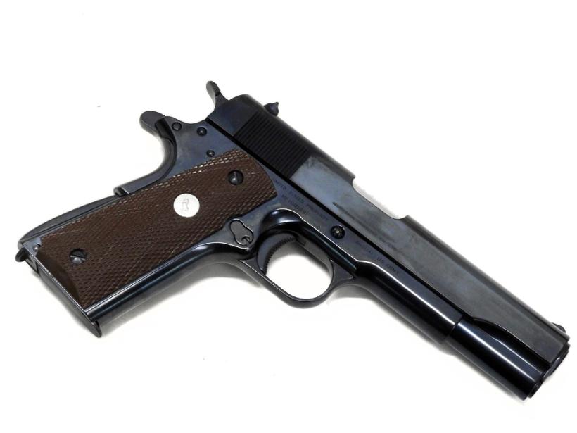 オーソドックスなスタイルのスタイルの1911A1でサービスピストルの王道である一丁をブルーイングカスタムした逸品。