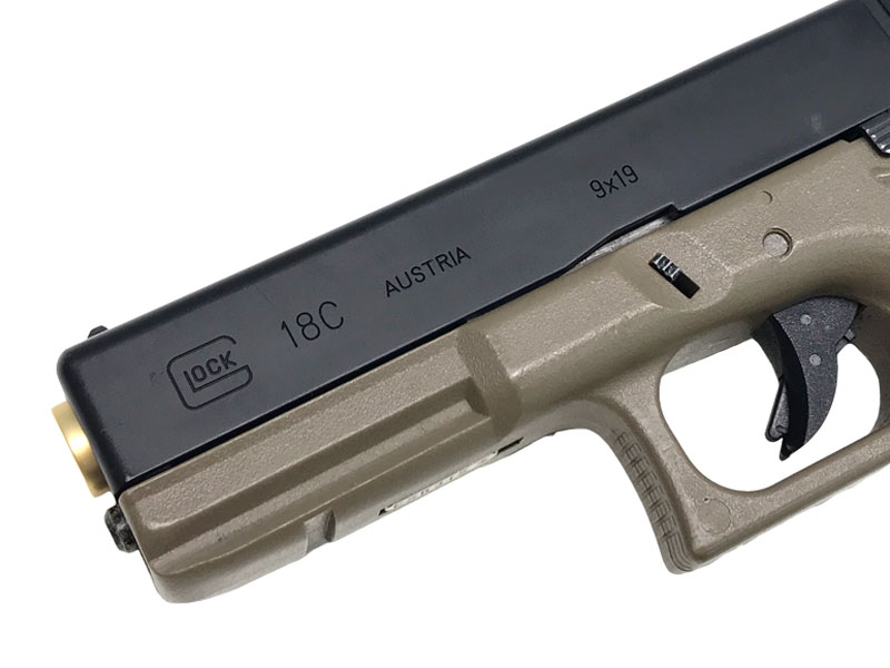 毎分1,200発の連射サイクルやスライドのフルストローク化、そしてセレクターによるフル・セミ切替機能の搭載とスライドオープン機能など、マシンピストル・グロック18Cとしてのリアルな作動を追求したモデルです。