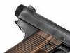 グリップはキレイな木目調になっており見た目にも高級感がある。フレームはヘビーウェイト素材でマガジンとトリガーガード、フロントサイト、ボルトは金属性になっている。