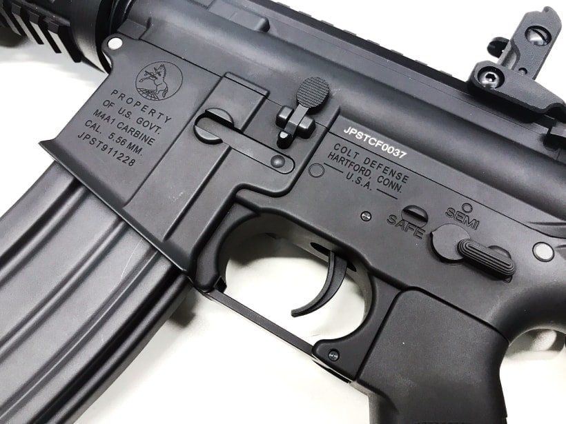 さらに、バッテリーが6.0V以下の低電圧時に作動を停止するカットオフ機能を搭載。またフルメタルで構成されており電動ガンながらも重量感と質感を損なわずリアルな触り心地を再現!!本製品には刻印も追加されており深く掘られた刻印が実銃の風格を演出してくれます。