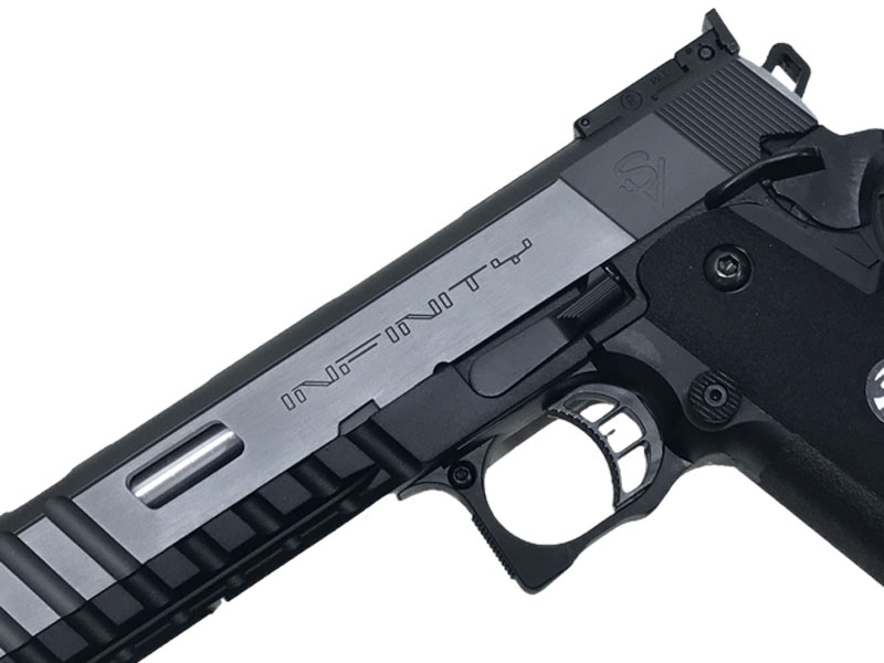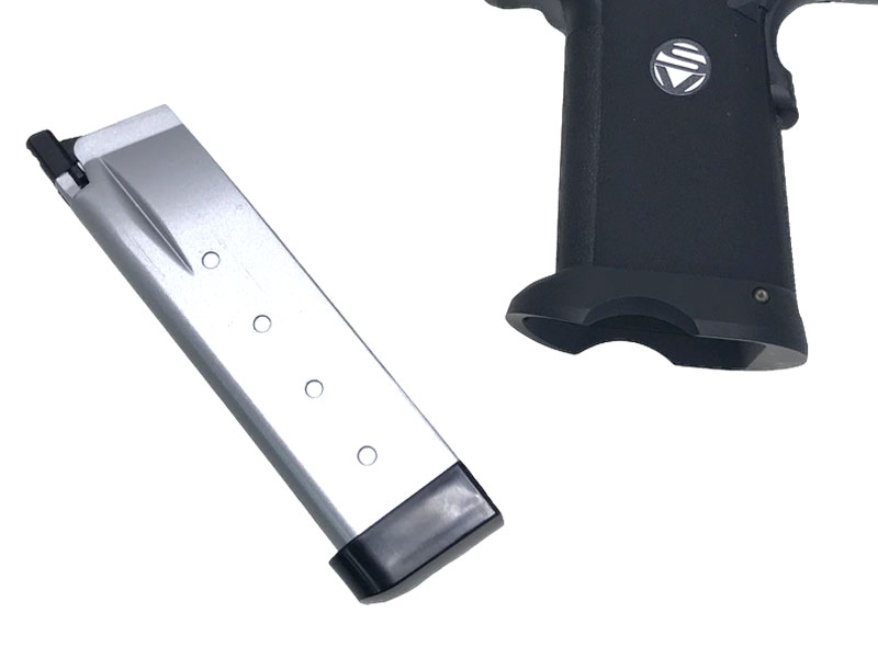 レースガンでつちかわれた射撃性能をフィードバックした高いポテンシャルと、大容量ガスタンクから繰り出されるガスブローバックハンドガン最高の圧倒的パワーを誇る「SVI エクセラレーター5.4」で、次世代のダブルスタック1911オートをその手で実感してください!