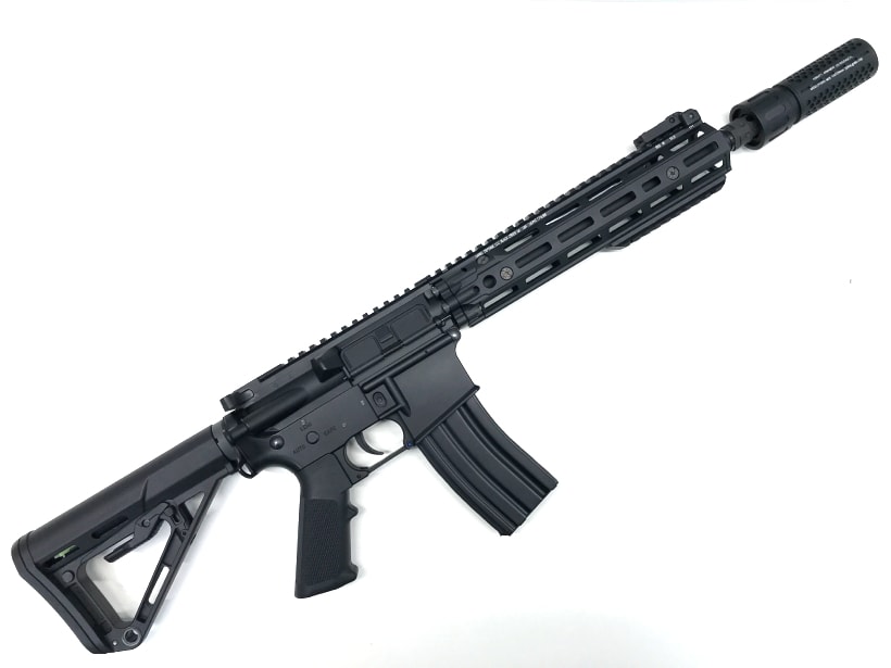 ナイツサプレッサー、PTSストックに換装し、内部もフルチューン済みの電子トリガー搭載電動ガン。