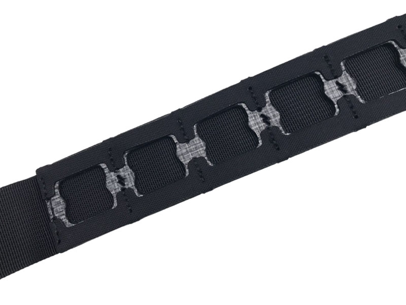 レーザーカットに特化した撥水性のあるナイロン生地「スコードロン」と、ポリプロピレンポリプロピレン繊維を積層化した熱可塑性複合材料「テグリス」を覆い挟み込む様に縫製したタクティカルベルト。長年の使用や過酷な環境下での使用、例えば縫製の一部に解れが生じた場合にも各部モールやループの機能が損なわれる事がないように設計されている。
