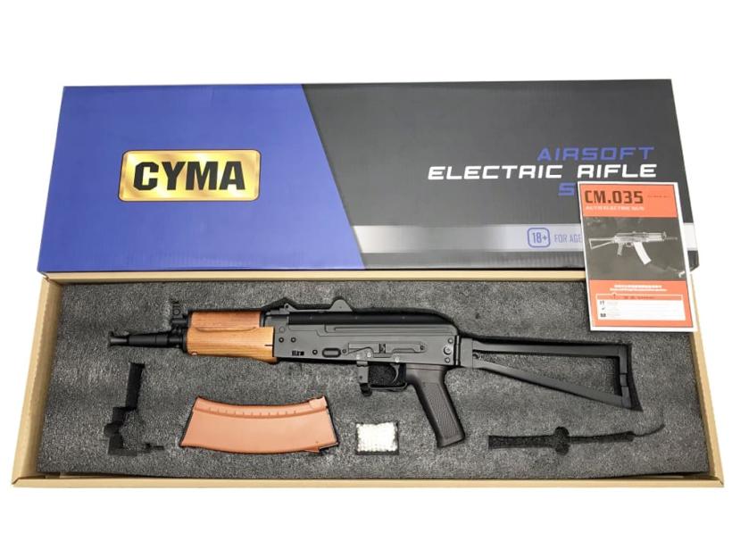 CYMA製のAKS74UNフルメタル製電動ガン。木製ハンドガード仕様。