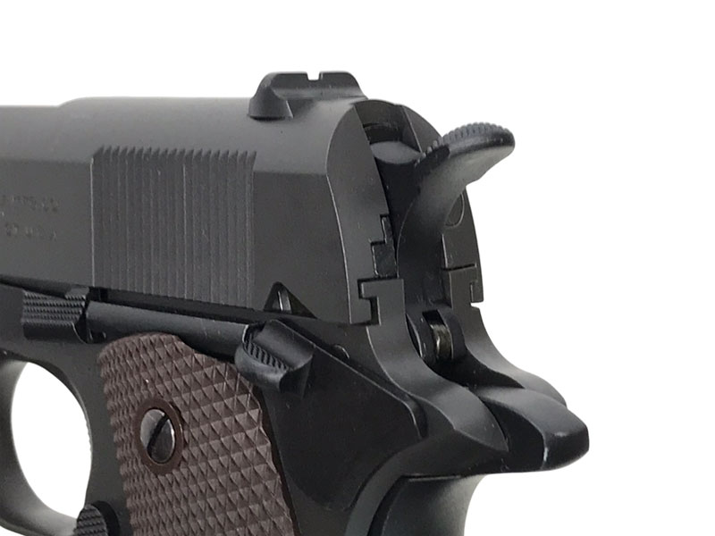 この銃はまずその外観がすばらしい。本物のパーカライズド処理をを徹底的に再現したブラスト仕上げと、モナカ構造の場合どうしてもできてしまうパーティングラインを極限まで磨き上げた研磨パーティング処理、一挺一挺丹念に入れられる打刻印方式でリアリティを高めている。 外観だけではなく強烈なブローバックで定評のあるハードキックブローバック、ブローバック時のスライドの抵抗を軽減するバレルサポートリングなどメカニズムにもこだわっている。
