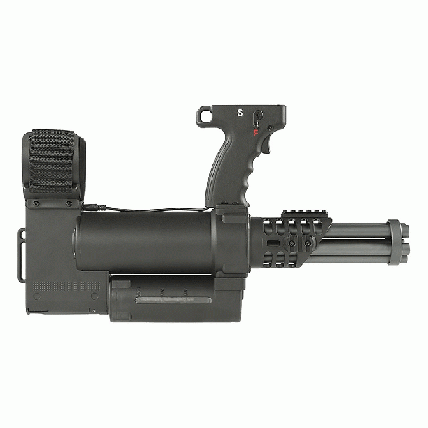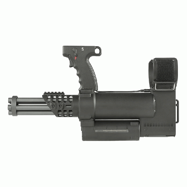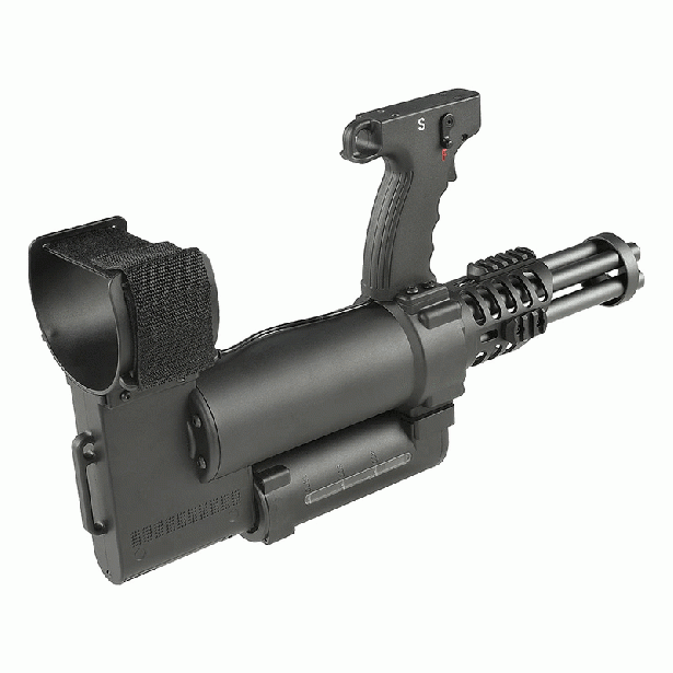 そのマイクロミニガンに新しい仲間、アームブレイスとガングリップを装着し、片手で扱える様にした「ザ・アーム」が登場!